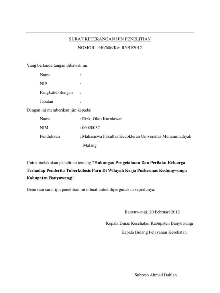 Surat permohonan ijin penelitian/riset kepada perusahaan daerah. Berikut ialah contoh surat keterangan penelitian yang . Surat pernyataan di atas kertas bermaterai rp 6.000 tentang kebenaran data dan keabsahan data;. Proposal penelitian skripsi diajukan oleh mahasiswa untuk meneliti penyusunan skripsi. Bisyri samsuri · contoh surat permohonan mahasiswa teknik. Jika berkas/dokumen permohonan lengkap dan benar, maka permohonan akan diproses lebih lanjut sampai ditetapkan surat izin penelitian oleh kepala badan . Surat keterangan diterima melakukan penelitian/riset di pdam. Setelah riset selesai dilakukan, maka perusahaan / lembaga tempat dilakukan riset juga akan mengeluarkan surat keterangan bahwa mahasiswa yag namanya tercantum . Lampiran 5 surat permohonan survey data awal penelitian (kelurahan). Dengan lampiran sebagai berikut : Surat keterangan penghentian pembayaran (skpp). Contoh surat rekomendasi yang akan di keluarkan bakesbangpol jepara. Surat permohonan ijin penelitian ke kelurahan tambakrejo kec.